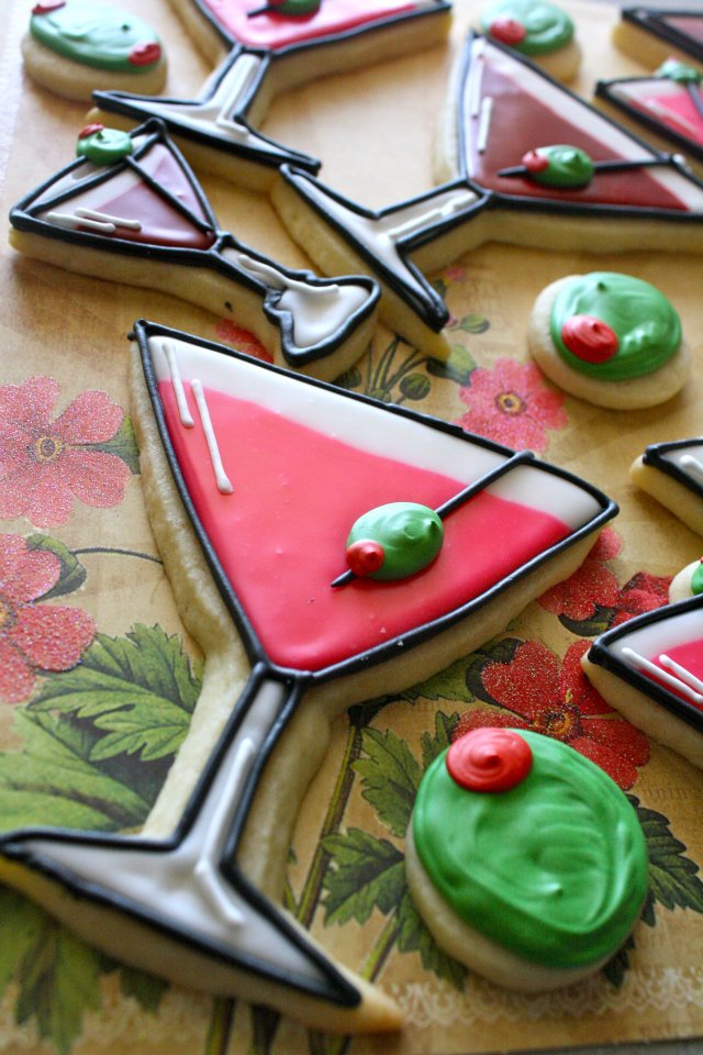 set includes 12 large martini glass cookies